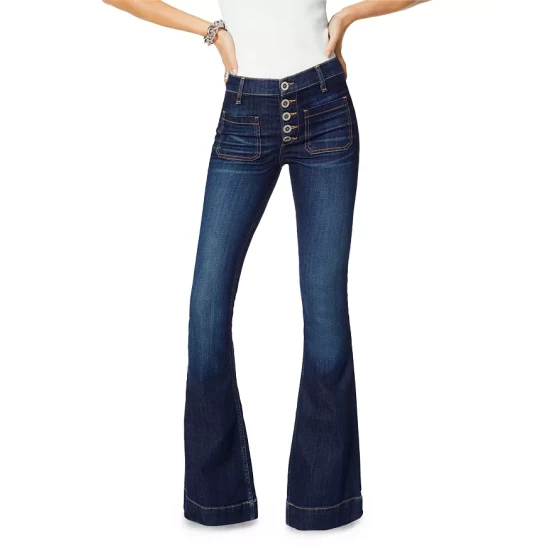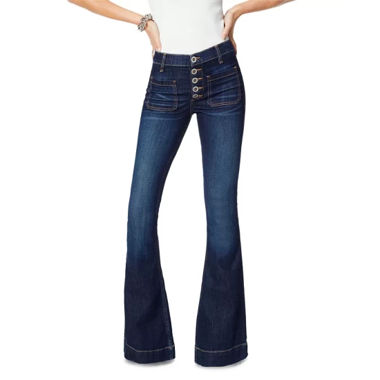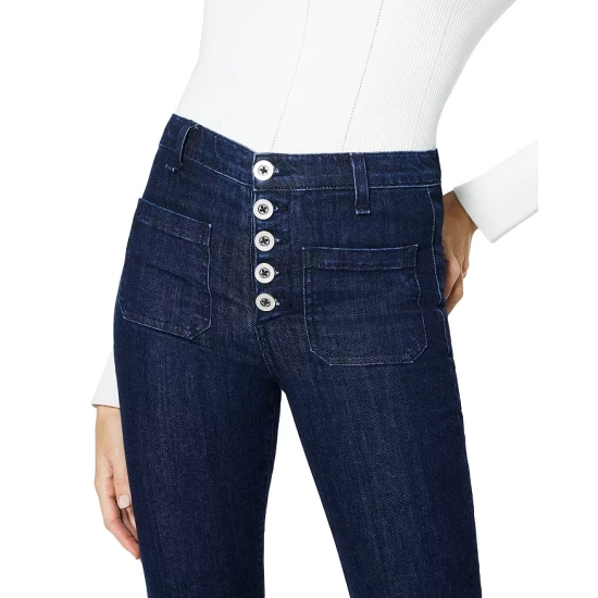 - Zip fly with double-button closure, side and back pockets