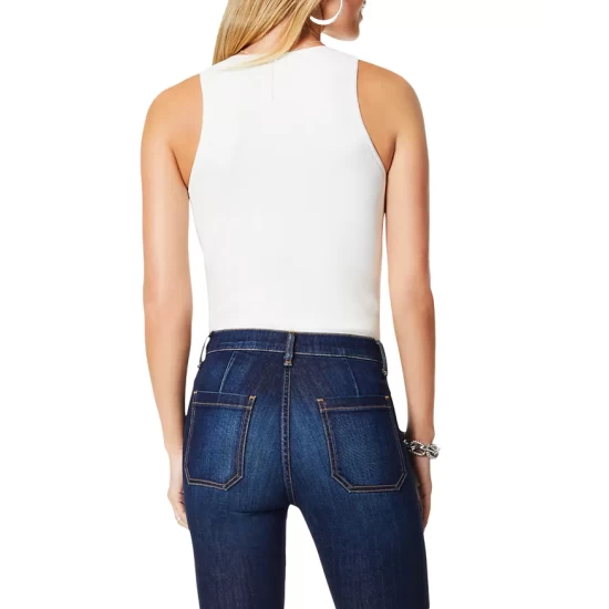 - Model measurements: 5’10” height, 33.5″ bust, 23.5″ waist, 34.5″ hips, wearing a size 27