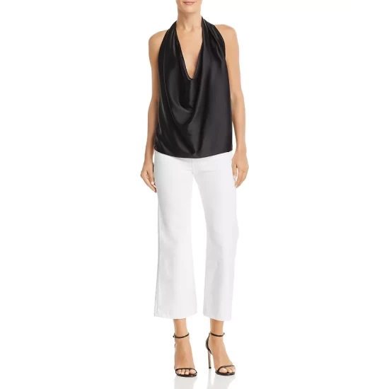 - Model measurements: 5’10” height, 33.5″ bust, 23.5″ waist, 34.5″ hips, wearing a size medium