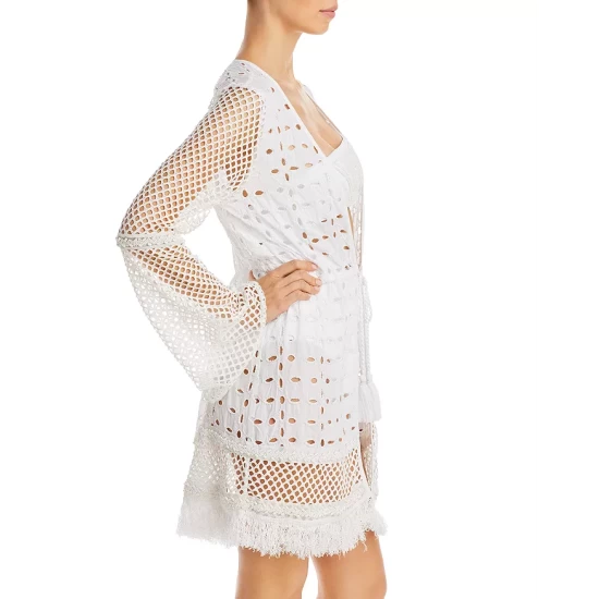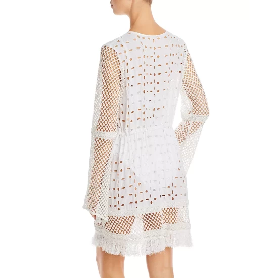 This is a best selling silhouette with all white specific detailing, especially great for our Resort brides We included intricate beading work throughout the garment that makes it especially unique. Bloomingdales is a go to resource for our Resort brides and bachelorettes so we thought this all white look would be exactly what our Bloomingdales girl is looking for.