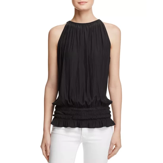 Delicate details–from the gently gathered neckline to the smocked, ruffle-trimmed hem–make Ramy Brook’s elegant top a can’t-miss essential for the season.